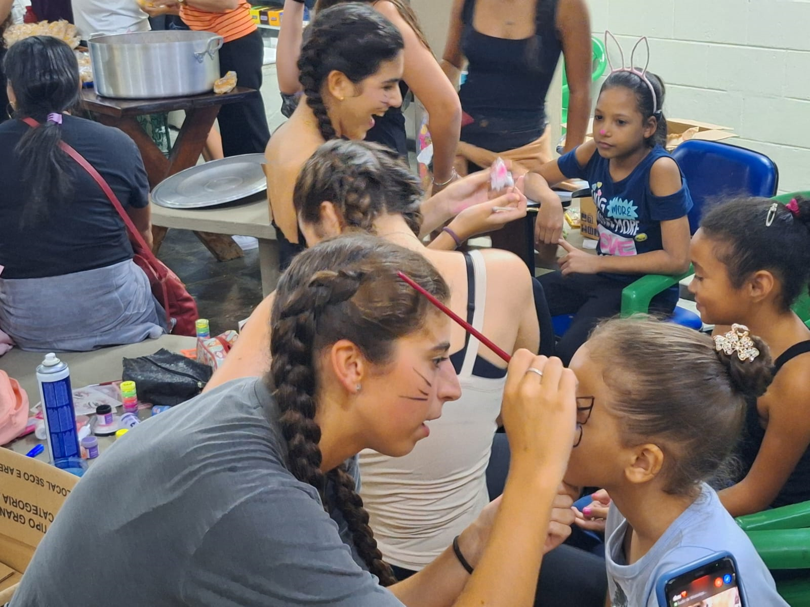 Na quarta-feira, véspera do feriado da Páscoa, os alunos do Voluntariado, juntamente com os professores Marcelo e Raquel, organizaram uma Festa Solidária de Páscoa para crianças da comunidade Vila Aparecida.